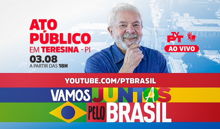 Após visitar Campina Grande (PB), Lula segue para a capital do Piauí, Teresina, onde participará de mais um ato público do movimento Vamos Juntos pelo Brasil, nesta quarta-feira (3).